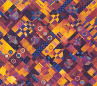 Most of the quilts include commerical fabrics and fabrics that I have hand-dyed, screen printed and painted. They are machine pieced, appliquéd and machine quilted.